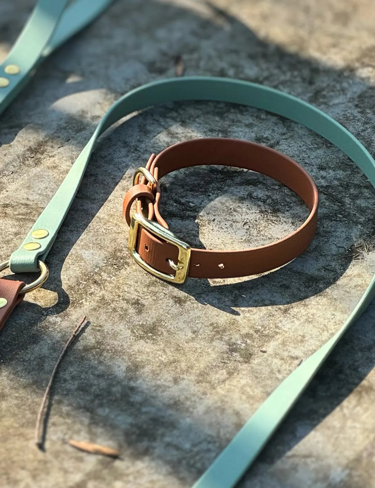 Obroża z Biothane dla psa z klamrą, Szałwia i jasny brąz