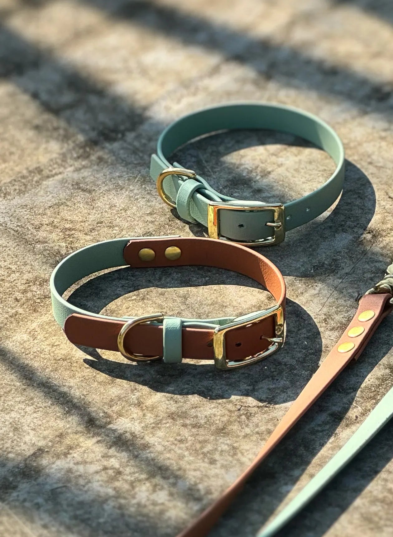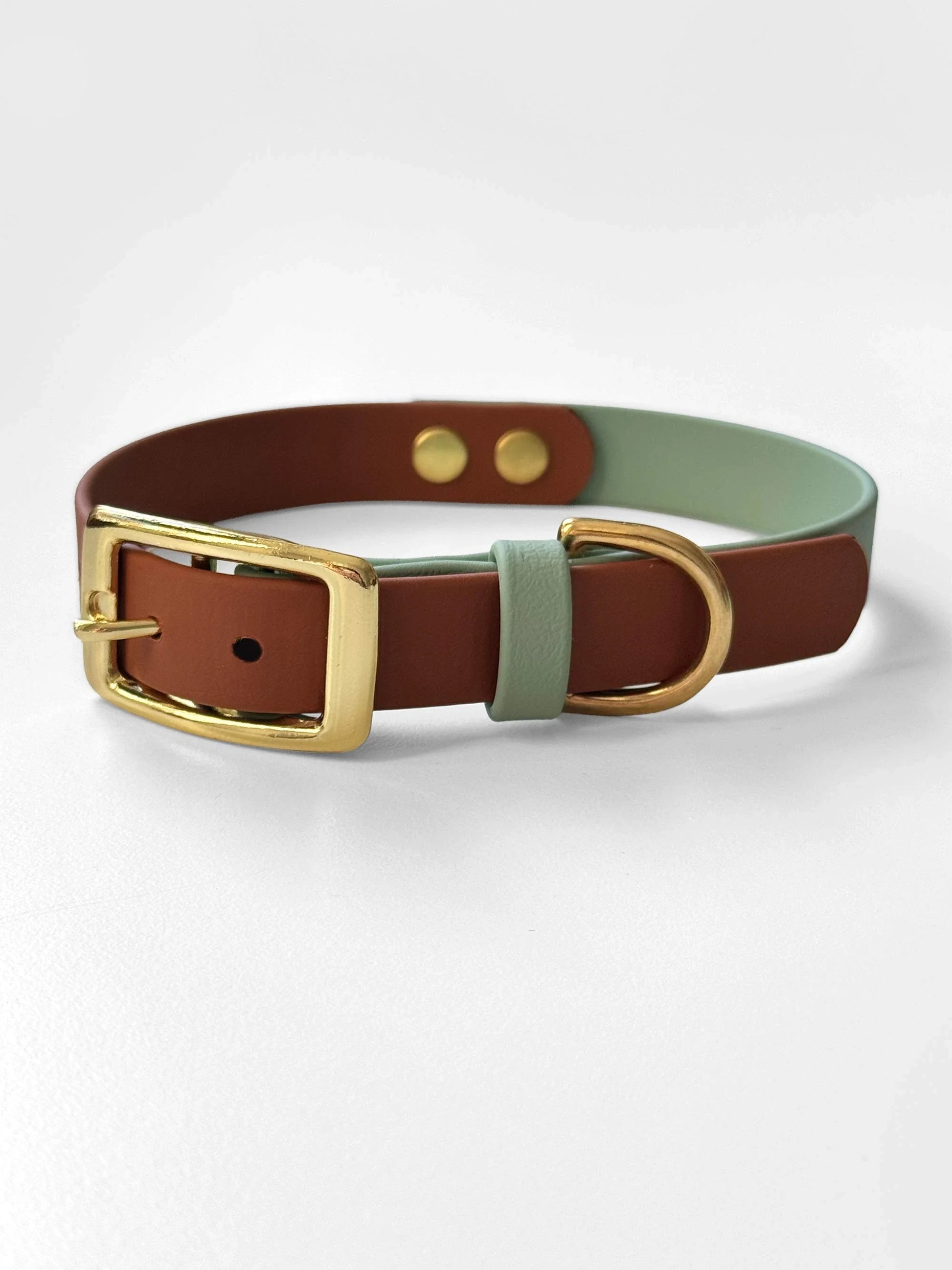 Obroża z Biothane dla psa z klamrą, Szałwia i jasny brąz