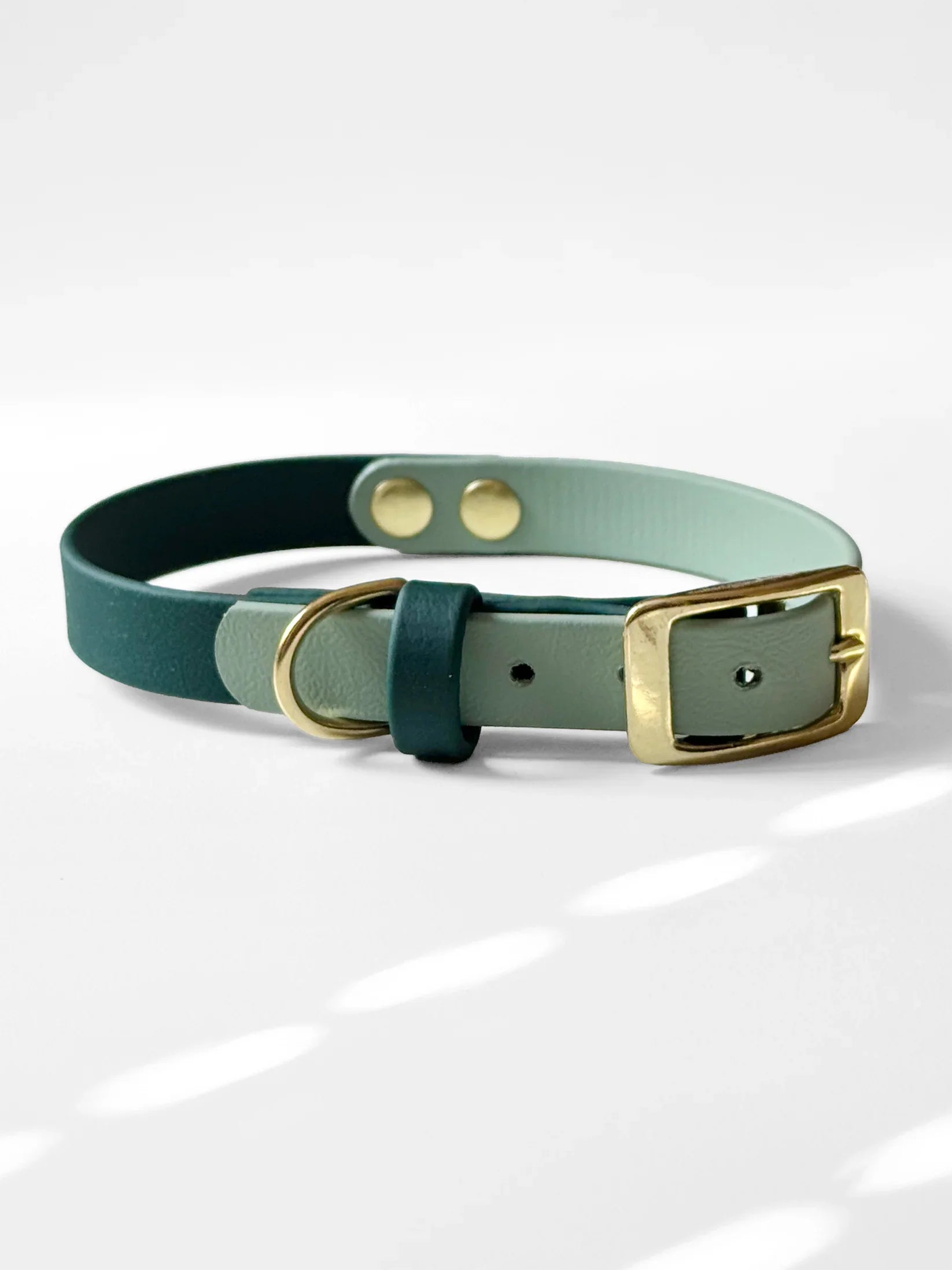 Obroża z Biothane dla psa z klamrą, Szałwiowy i ciemna zieleń