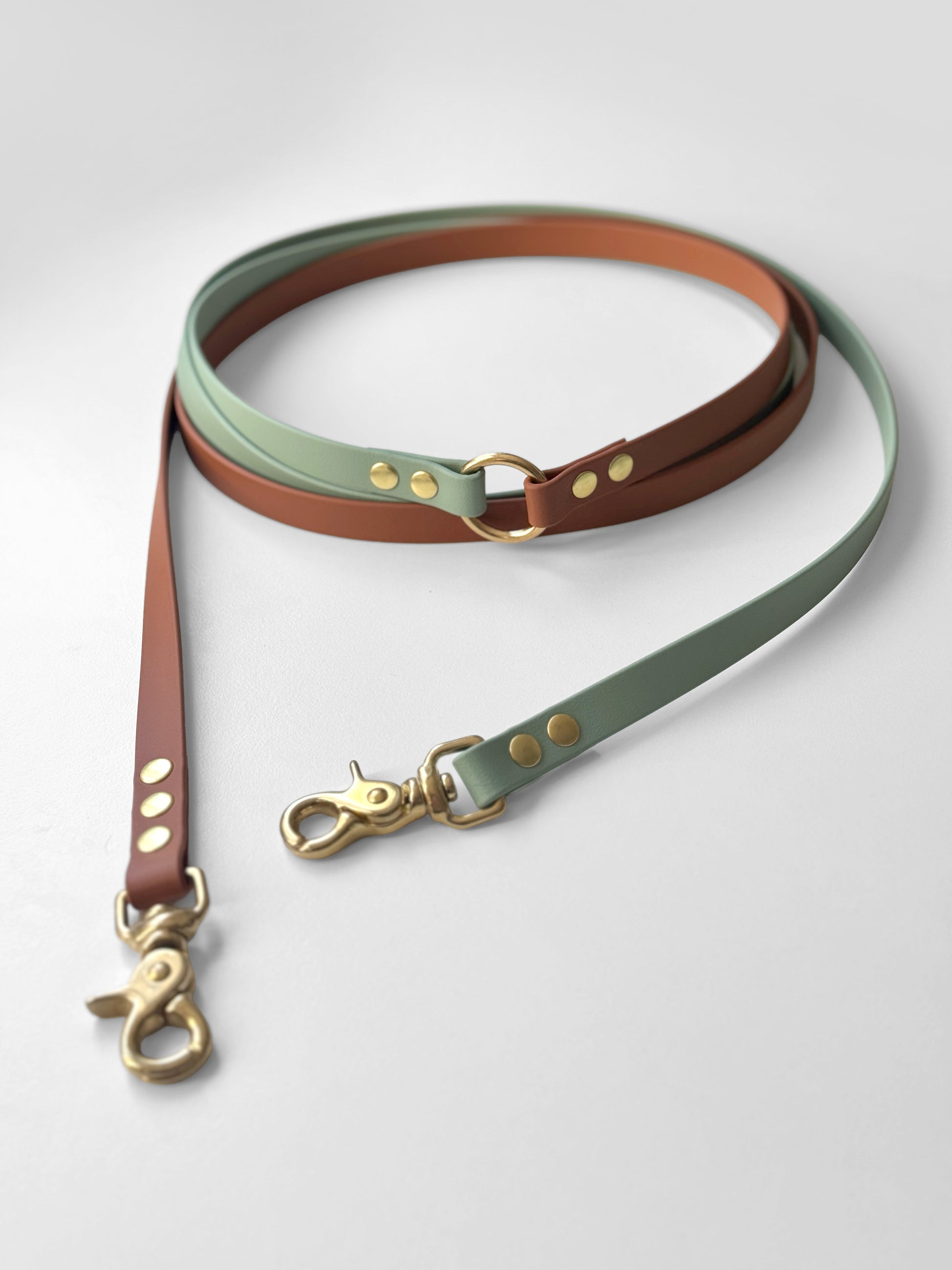 Smycz BioThane® Hands-free, Szałwiowa i jasny brąz